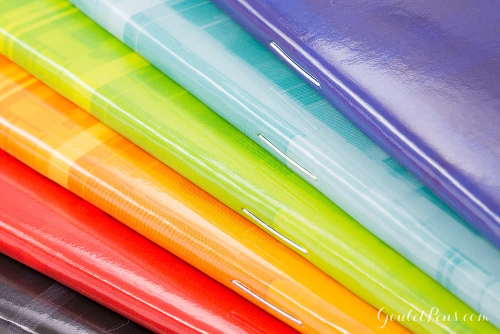 This A4-sized notebook features 40 sheets (80 pages) of white 90g Clairefontaine ruled paper with margins and reinforced staple binding. Lines are spaced 8mm apart, and there is a red vertical margin line on the left. A perfect satin finish for maximum smoothness in writing.