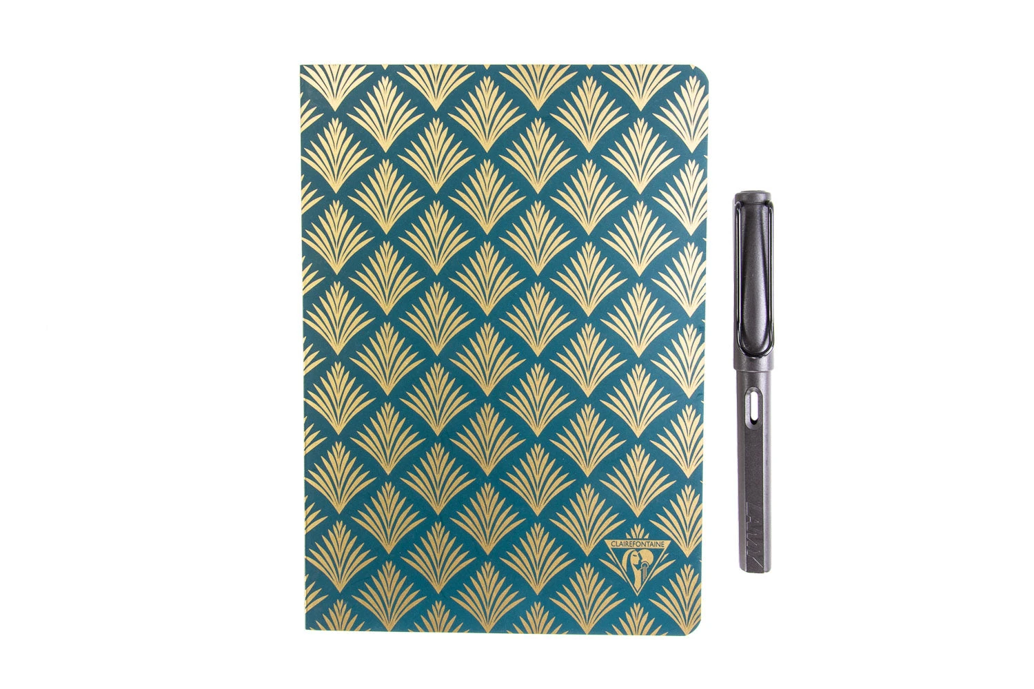 This Neo Deco themed A5-sized notebook features 48 sheets (96 pages) of super smooth ivory 90g Clairefontaine lined paper with a sewn spine binding. The cover is made of cardboard with a matte coating, finished with shiny gold printed accents.