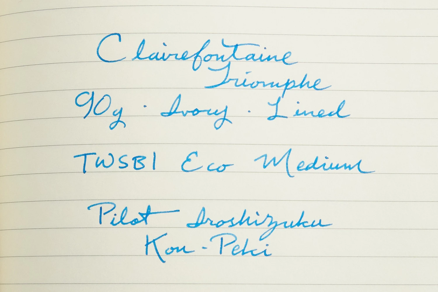 This A5-sized notebook features 48 sheets (96 pages) of 8mm lined ivory 90g Clairefontaine Triomphe paper. Both fountain pen and marker friendly, the paper is super smooth, acid-free, and pH neutral. The notebook has a sewn spine binding, yet also lays flat! The dark blue cover features silver stamping.