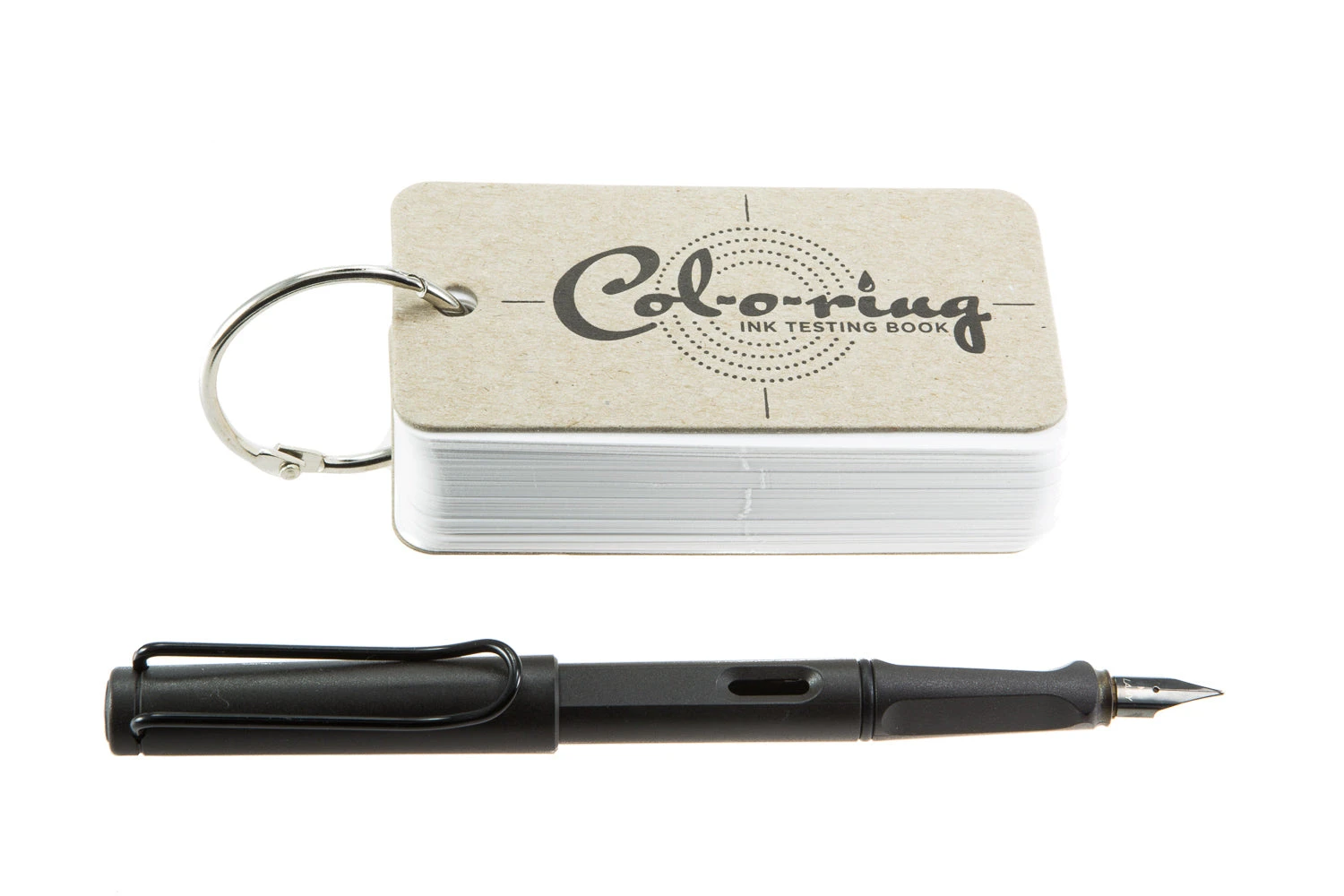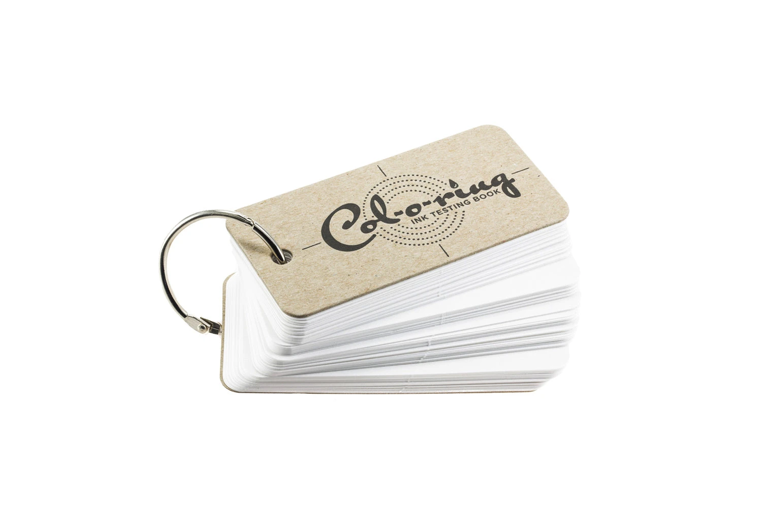 The Col-o-ring Ink Testing Book helps you keep your ever expanding ink sample catalog organized with 100 white sheets of 160g paper bound with a ring clip. Colors pop against the white paper which resists feathering and bleeding. You can use the back of each sheet for more swatches or as a place to make notes about the swatches on the front. The clip ring allows you to easily add, rearrange or remove swatches helping you find the right sample fast.