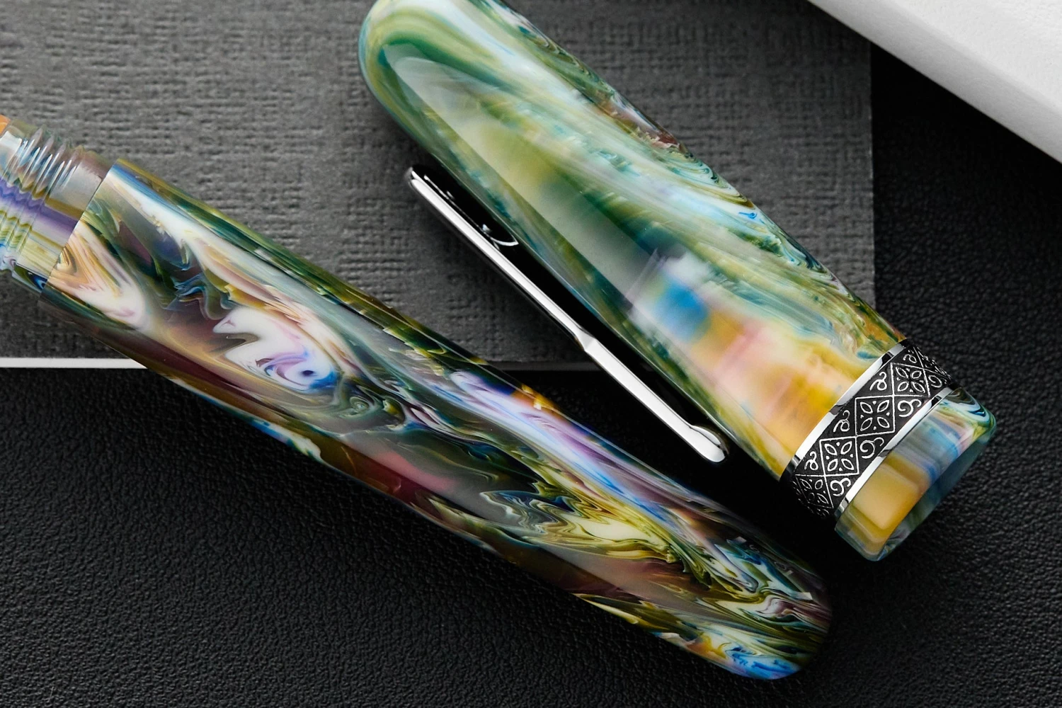 Conklin 1898 is inspired by the rich heritage of the Conklin brand, designed with comfort and durability in mind. This collection is suited to individuals looking for a well-sized, cigar shaped pen that provides a larger surface area for a comfortable grip while writing. Offered in three beautiful misto colors: Green, Purple, and Orange, with unique color blends where no two pens are alike. This Misto Green features a chrome trim, to further highlight the unique color blends of each pen.
