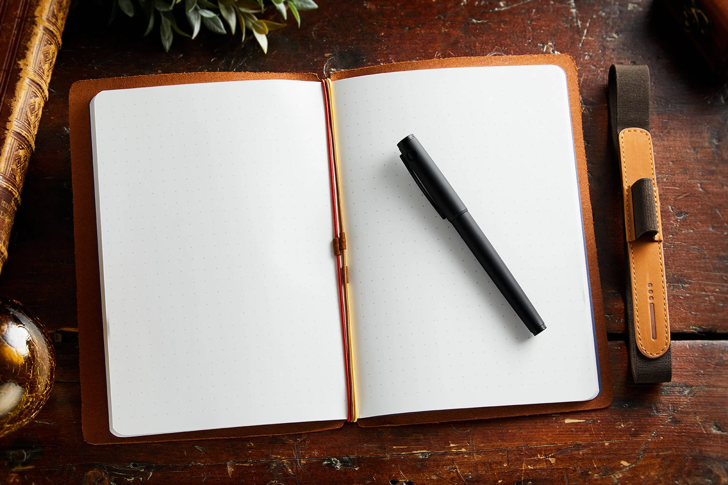 All 128 pages (64 sheets) are completely acid-free with minimal-to-no bleeding, ghosting, or feathering, so you have the smoothest writing experience. Our custom larger 7mm dot grid ruling gives you greater flexibility to use pens with broader nibs.
