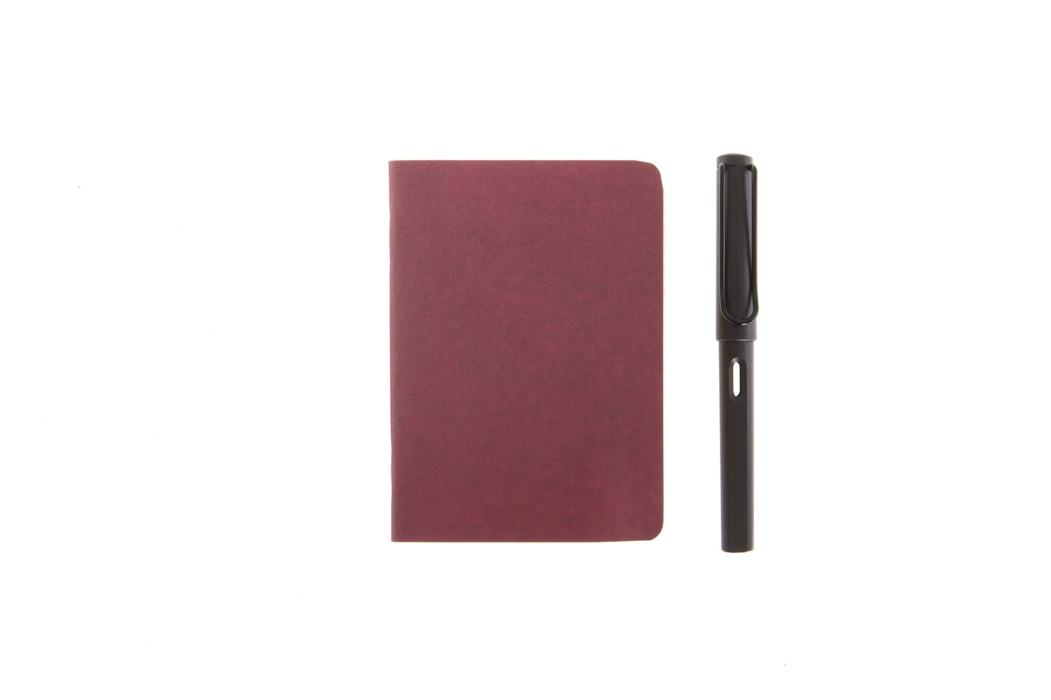 A Goulet Pens exclusive! This side stapled notebook features 48 sheets (96 pages) of white 52gsm fountain pen friendly 7mm lined Tomoe River paper, a burgundy 150g kraft paper cover printed with soy ink, rounded corners, and measures 8.9cm x 12.4cm (approximately 3.5in x 4.88in). Use it as a refill for inside your passport sized Traveler’s Notebook or as a standalone notebook. Made for us and assembled in Taiwan, using Tomoe River paper from Japan.