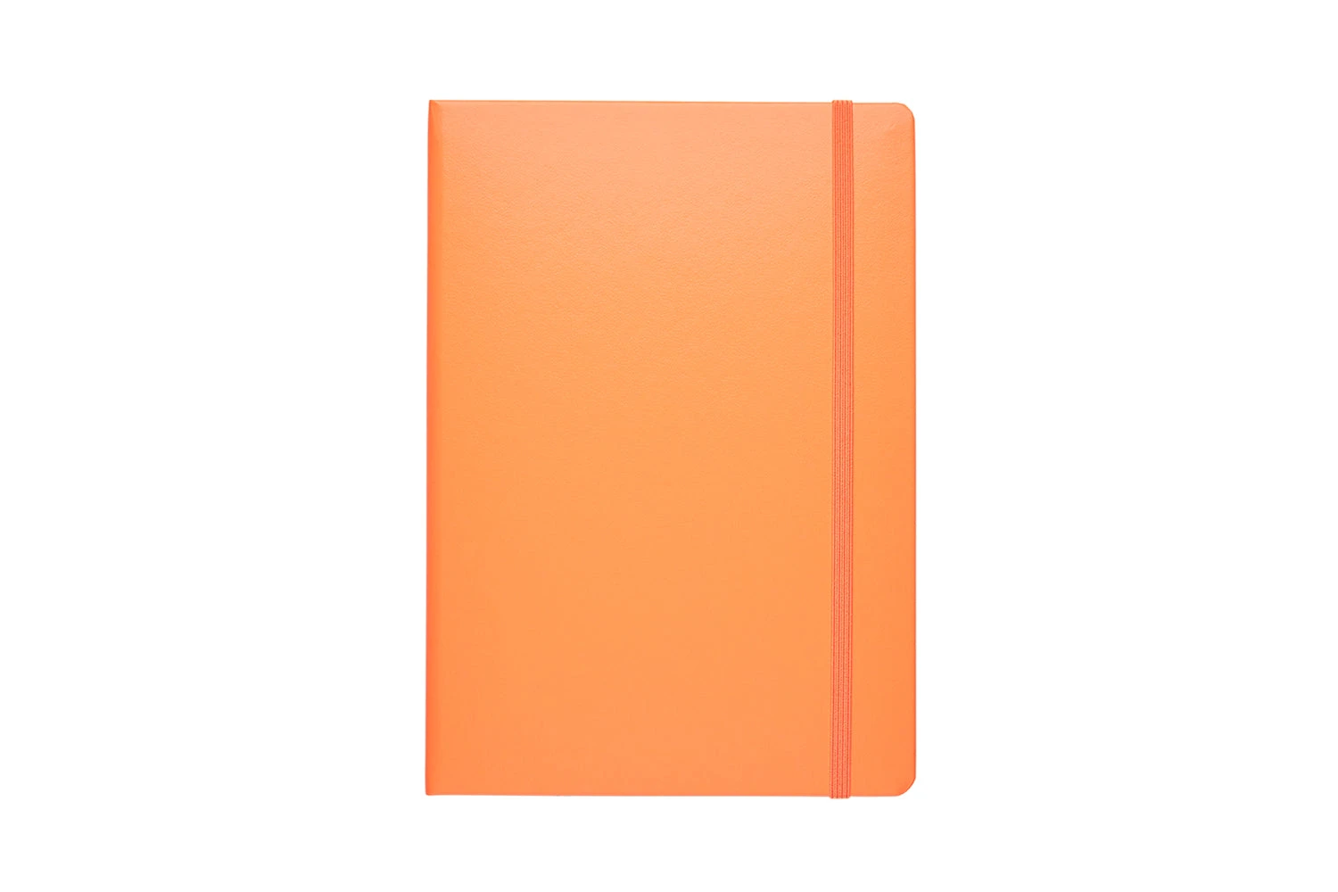 This medium A5-sized Apricot colored Leuchtturm1917 hardcover notebook is equally suited for the desk and for use on the move. It contains 249 numbered pages (125 sheets) of 5mm dot grid 80g ivory paper. Features include an expandable pocket, a blank table of contents, two ribbon page markers, elastic band fastener, stickers for labeling/archiving, and it opens flat.
