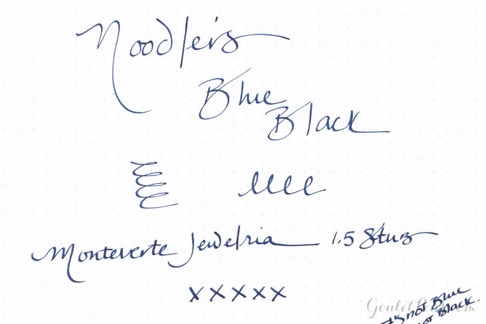 3oz (90ml) glass bottle of Noodler’s Blue Black fountain pen ink. Noodler’s inks are handcrafted, so there may be slight color variations from batch to batch.