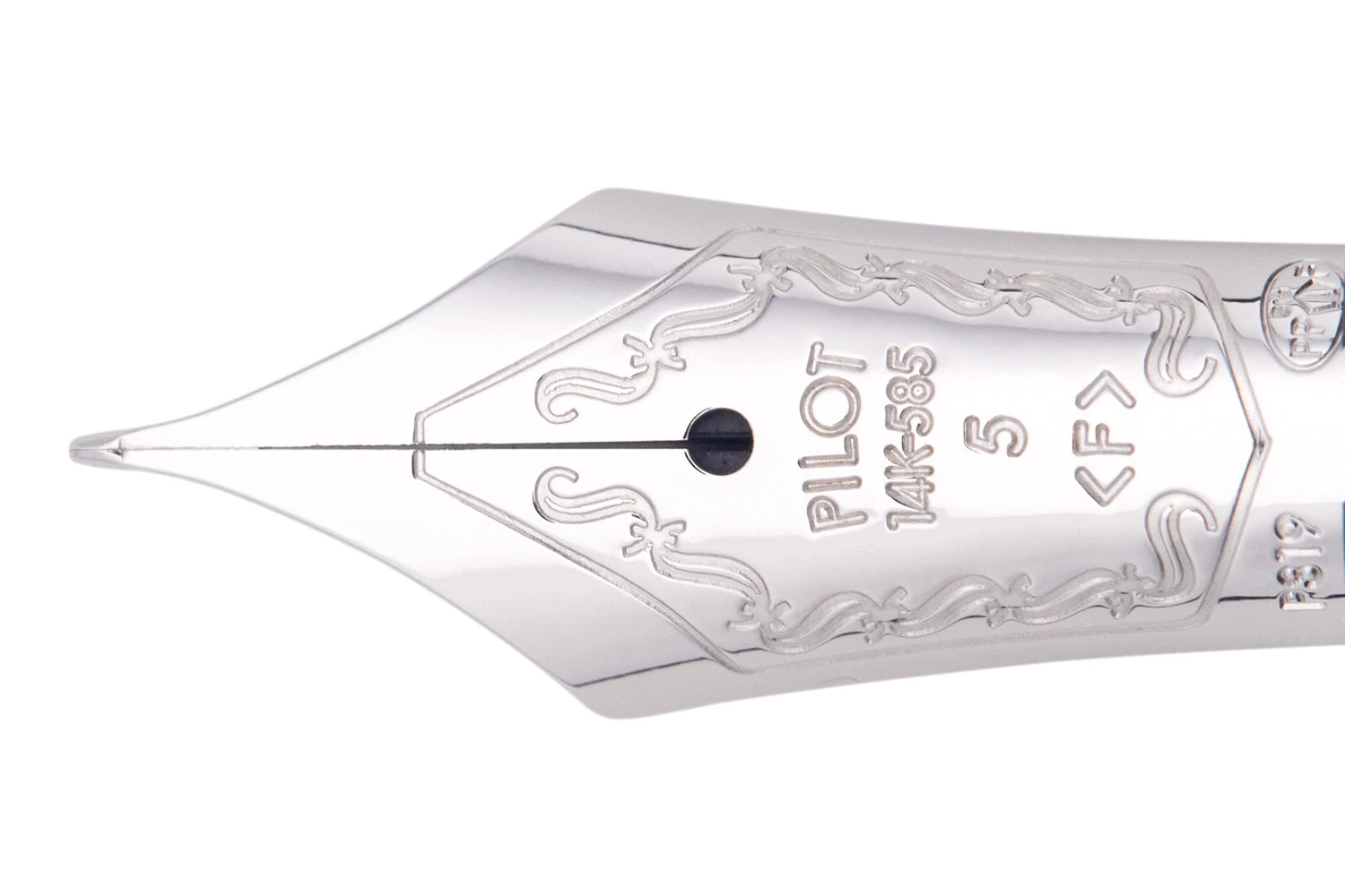 The Pilot Custom Heritage 92 fountain pen uses a rotating suction mechanism (piston-fill). The clear demonstrator allows you to see both the color and the amount of the remaining ink in the barrel, and it is complemented by silver trim. The rhodium-plated 14k gold nib maximizes the functionality and smooth writing of a fountain pen, achieving the strength of character nuance. Each Custom Heritage 92 pen is merchandised in an elegant Pilot gift box.