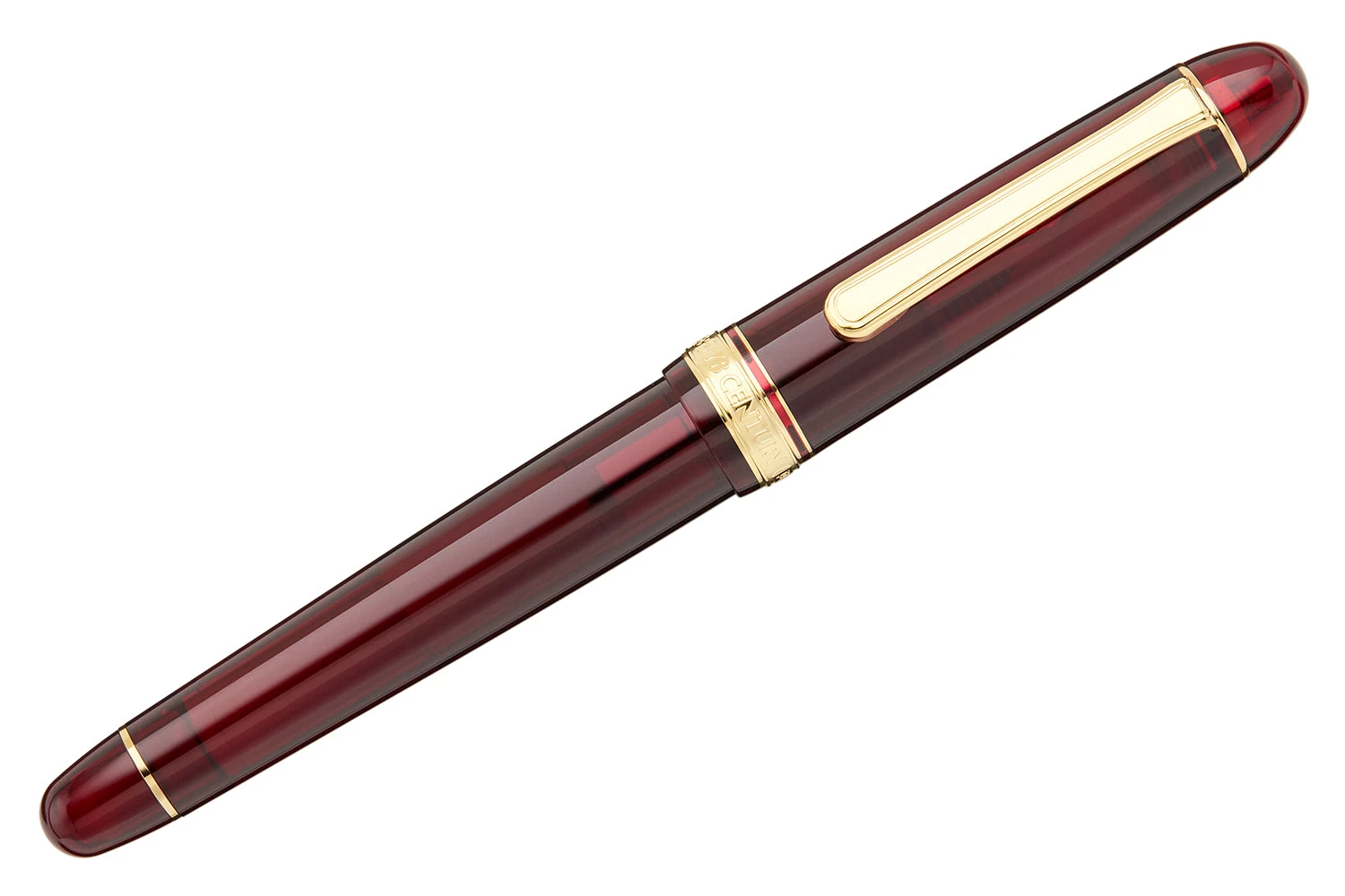 With Platinum’s latest technology and innovative cap design, the “Slip & Seal” mechanism in this #3776 Century model prevents the ink from drying out for up to 24 months. This translucent burgundy red fountain pen is accented by gold trim and features a 14k gold nib. It accepts proprietary Platinum cartridges or a Platinum converter (both included) for use with bottled ink.