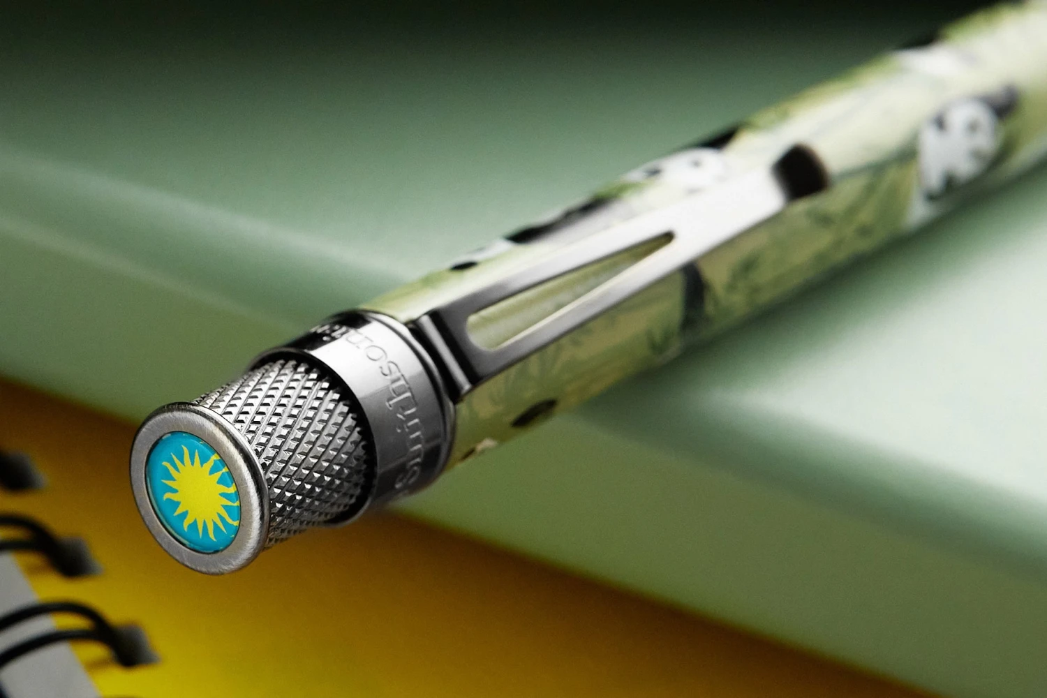 This Smithsonian Collection pen not only writes with the dreamy rollerball refill, but it also has multiple charming pandas printed on the lightly textured barrel. Each Tornado is complete with antique silver accents, individually numbered top ring and the Smithsonian sun logo on the finial. Adopt one of these National ZooPandas for your collection or wrap it up as a gift for family and friends, they’re sure to bring smiles for years to come.