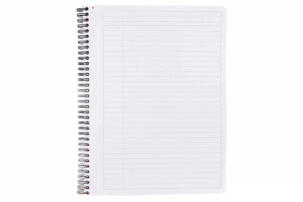 This orange wirebound Rhodia notebook features 80 sheets (160 pages) of extra white 80g acid-free, pH neutral ruled paper and a coated and waterproof orange cover. Lines are spaced 8mm apart. Each sheet is microperforated for easy removal, and a blank margin surrounds all four sides of each page.