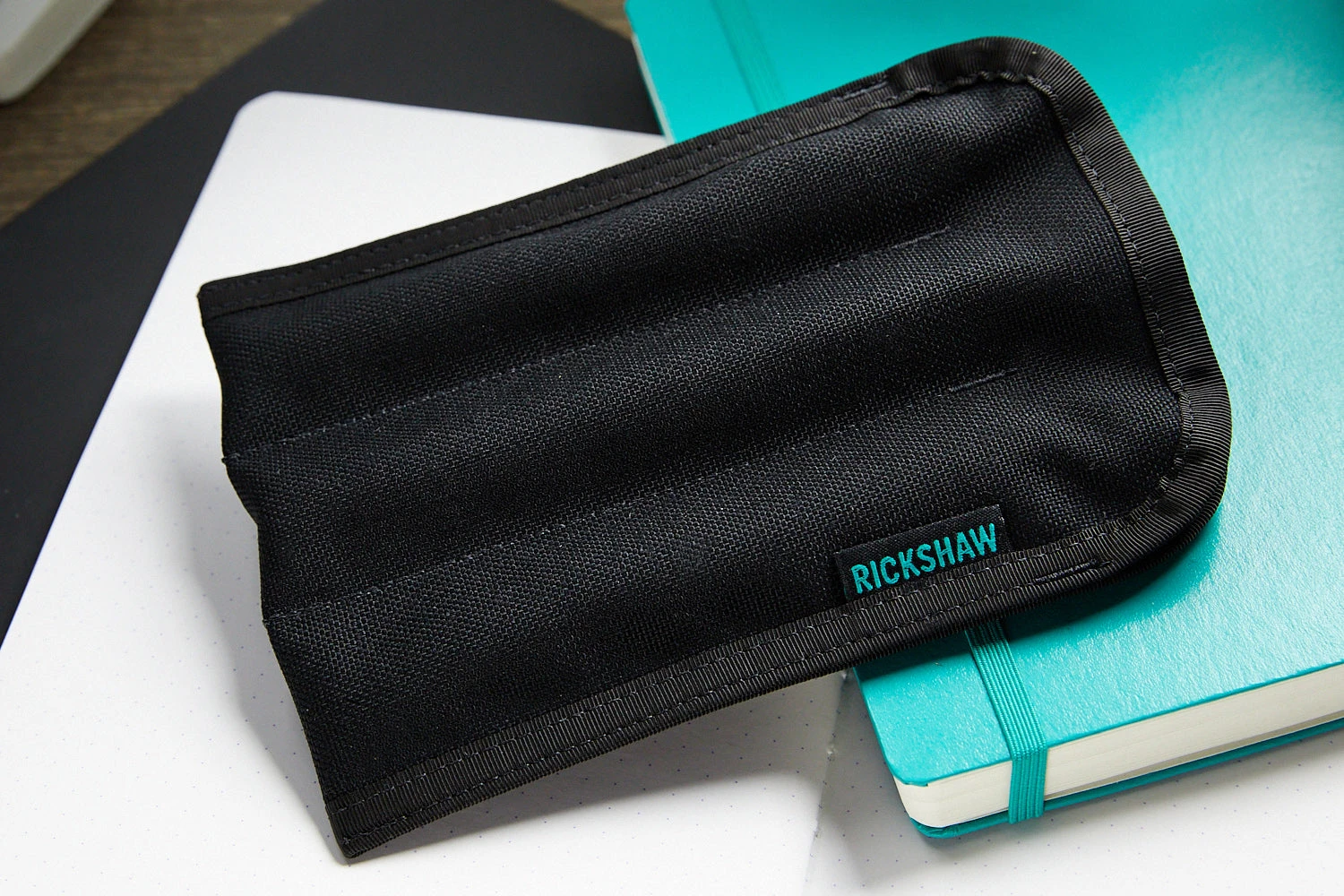 Rickshaw Bagworks pen sleeves are made in San Francisco. The exterior is Rickshaw’s DigiPrint™ polyester canvas, and the interior is Royal Plush™ polyester. Black nylon binding and thread. All materials are colorfast and machine washable.