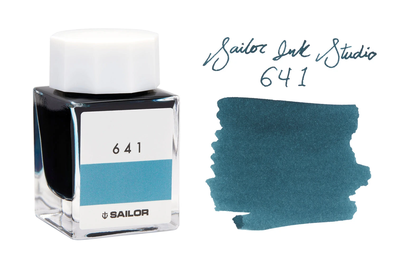 20ml square glass bottle of Sailor Ink Studio 641 turquoise fountain pen ink.