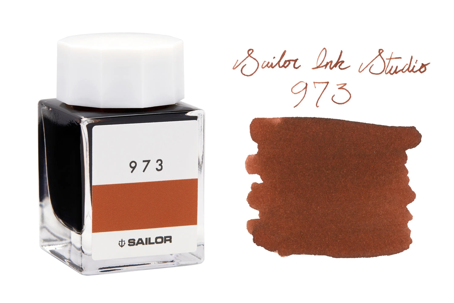 20ml square glass bottle of Sailor Ink Studio 973 brown fountain pen ink.