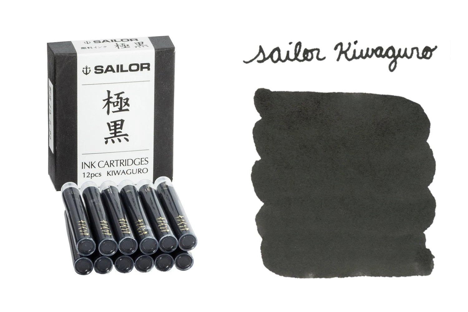 Boxed set of 12 Sailor Kiwaguro Pigmented Black fountain pen ink cartridges.