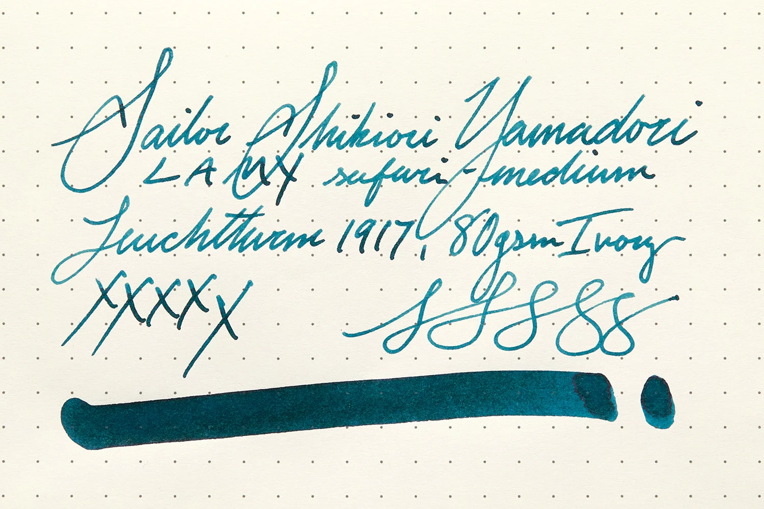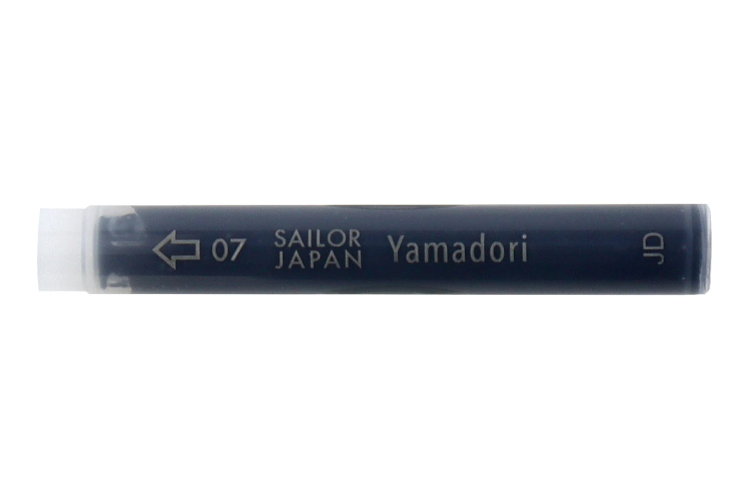 Boxed set of 3 Sailor Shikiori Yamadori fountain pen ink cartridges. Yamadori, or Copper Pheasant, is a beautiful teal blue/green.