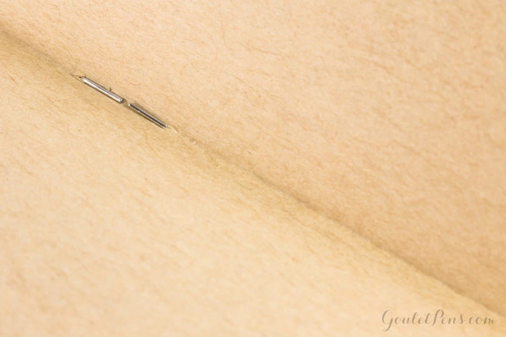 This refill for the regular size Traveler’s Notebook measures 11cm x 21cm (approximately 4.33in x 8.25in), and contains 32 sheets (64 pages) of brown blank paper. An original paper is used for this notebook where both the rough texture of the kraft paper and writing suitability is achieved. Updated version for 2016, now side stapled instead of stitched.